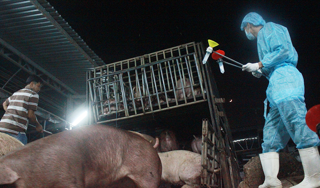 Cán bộ chi cục Thú y TP.HCM kiểm tra tồn dư chất cấm tại một lò mổ – Ảnh Hoàng Lộc